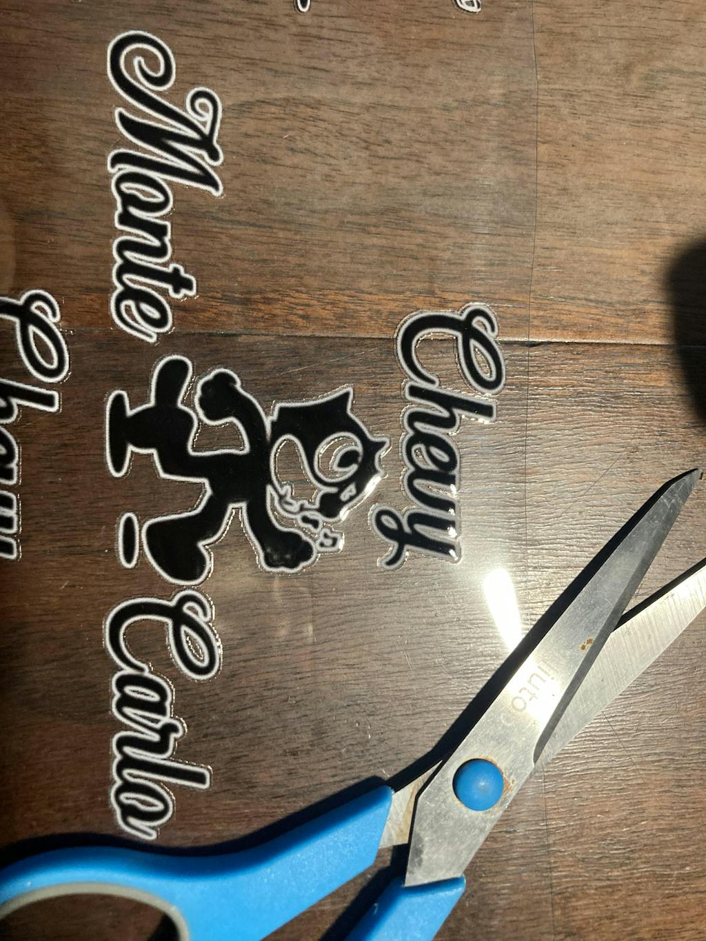 This UV decals do not go through a cutter, they are printed directly to a transfer sheet, INK + Varnish + glue
